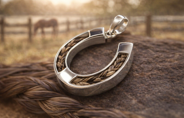 A tribute that carries the strength and spirit of the stable. Handcrafted in solid 925 sterling silver by Yma O Hyd, this Horseshoe Pendant is uniquely engineered for those who wish to preserve a lock of their horse’s mane or tail.