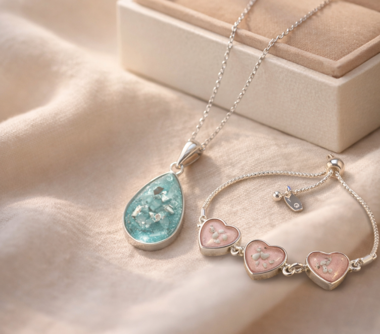 Handcrafted memorial jewellery made with ashes, hair and fur - a beautiful way to keep them still here - always.